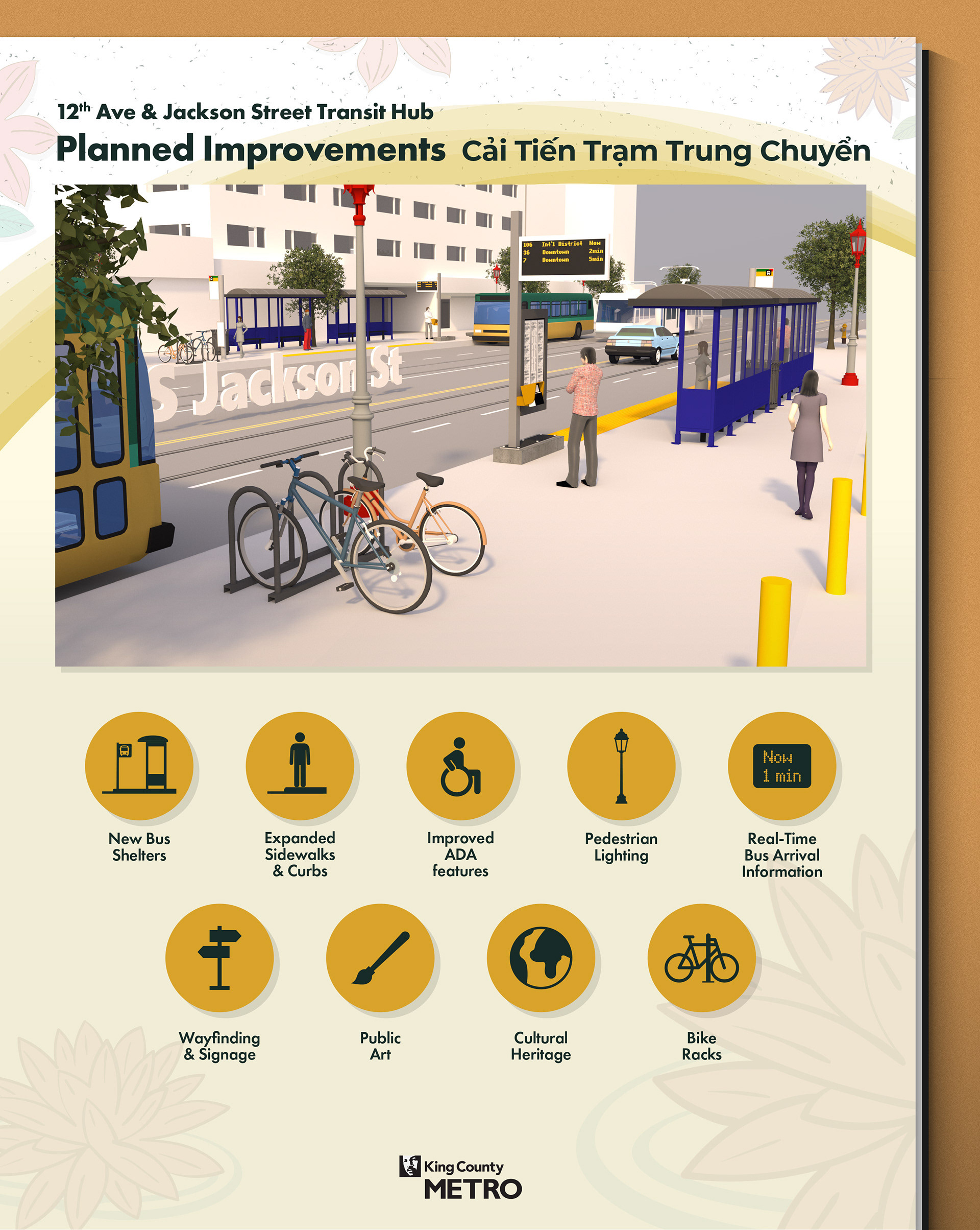 The 12th Ave and Jackson Street intersection is one of Seattle’s busiest transit hubs, serving a dense mix of residents, workers, and visitors in the Chinatown-International District. I designed a informative flyer to help the community understand and engage with proposed improvements addressing safety, accessibility, and capacity.
