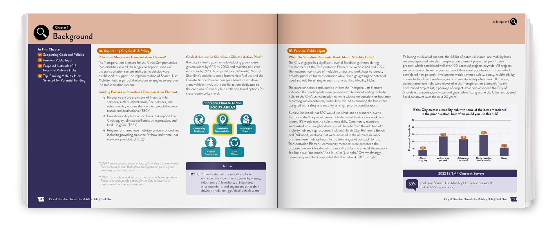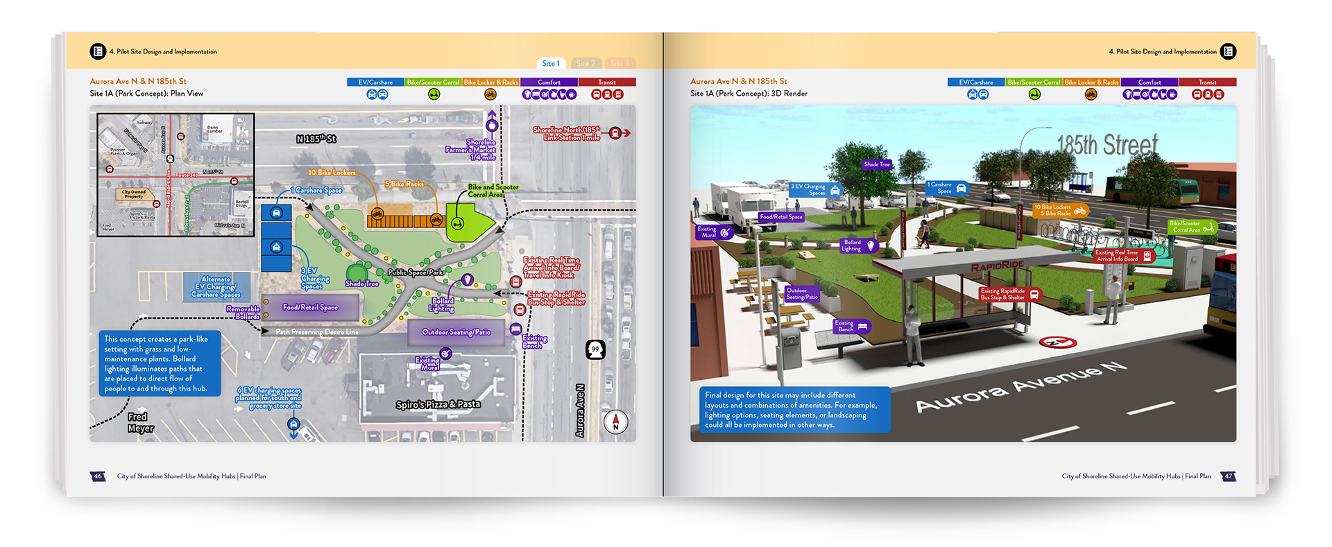 For an in depth look at the entire Shared-Use Mobility Hubs Plan, check out the pages below: