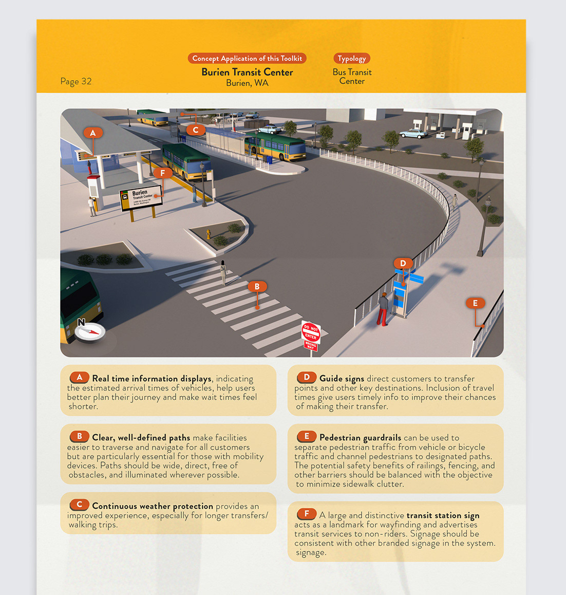 A visual toolkit designed to help planners improve safety, accessibility, and usability at transit hubs through clear, structured guidance.